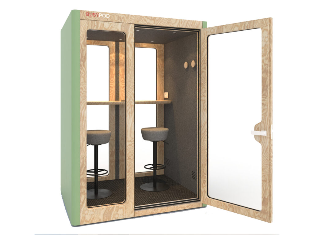 A privacy booth allows employees to step into a quiet environment where they can concentrate fully on their work or conversations.